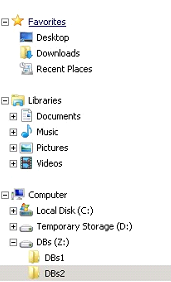 Crearemos a esta máquina Virtual un disco de 7GB y asignar el nombre DBs, Formatéelo y asígnele el Volumen Z:, luego cree 2 carpetas en la raíz de Z: que se llamen DBs1 y DBs2 y a cada carpeta créele un archivo de texto con el mismo nombre.