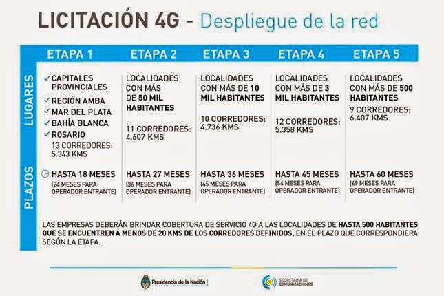 Luego se expandirán al resto del país; las bases de la licitación exigen que se cubra la mayor parte del país (poblado) con este servicio en el lustro siguiente al inicio de las operaciones, es decir, que para 2020 debiera haber 4G en todo el país.