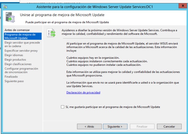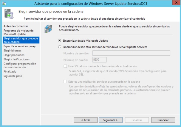 Con esto tenemos instalado el servidor Wsus básico, aunque aún no operativo al 100%.
